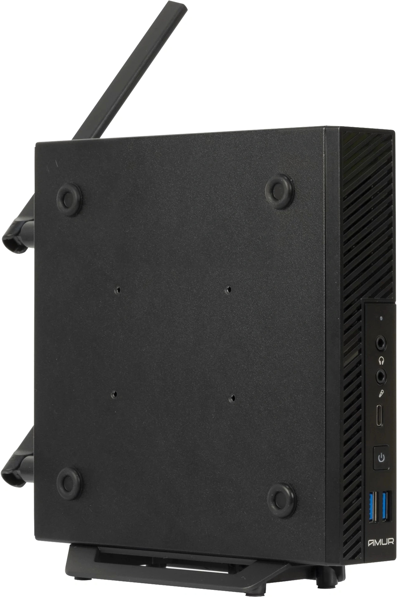 - Установите мини-ПК на стол, под монитор или на крепление (если оно предусмотрено), оставив доступ к вентиляционным отверстиям.