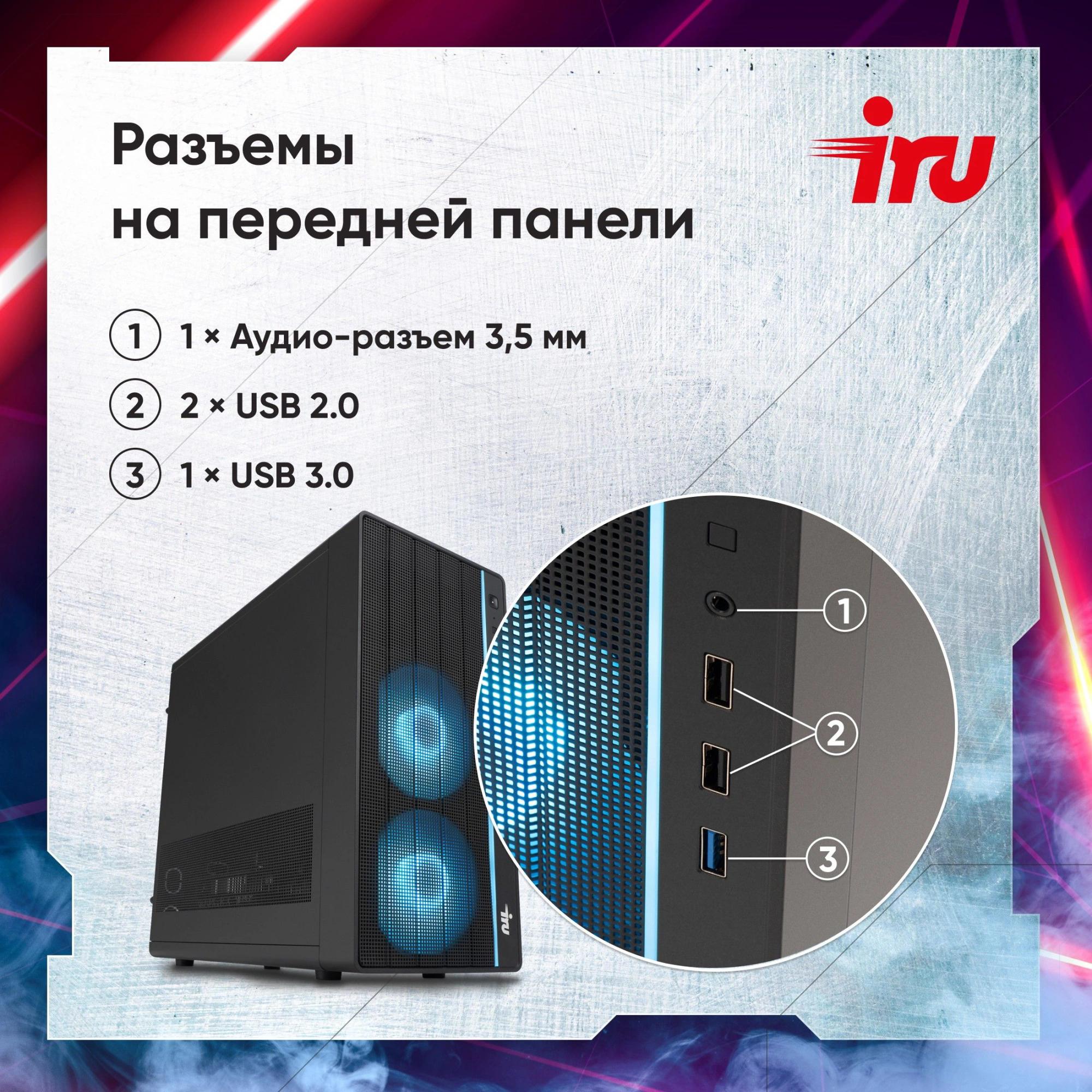 Настольный компьютер iRU - Tactio 310H6SEA, Intel Core i5 13400F 2500MHz, DDR5 32 ГБ, SSD 1 ТБ, nVidia GeForce RTX 5060 8GB, чёрный, FreeDOS, Midi Tower, 2121934
