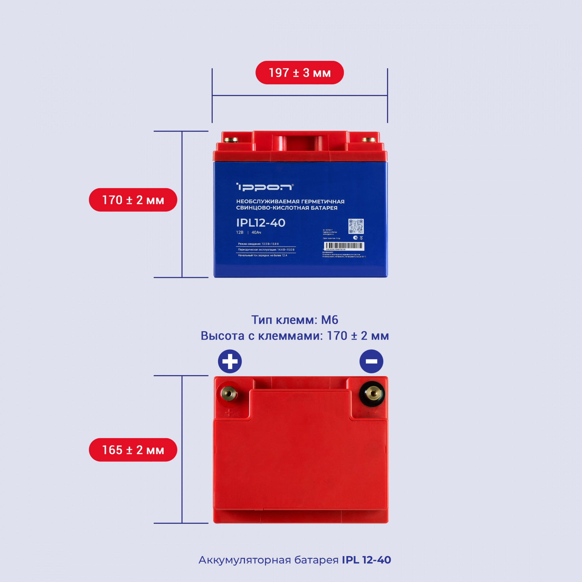 Батарея для ИБП Ippon - IPL12-40, 40А/ч, 12В, Internal, T7, 1873317