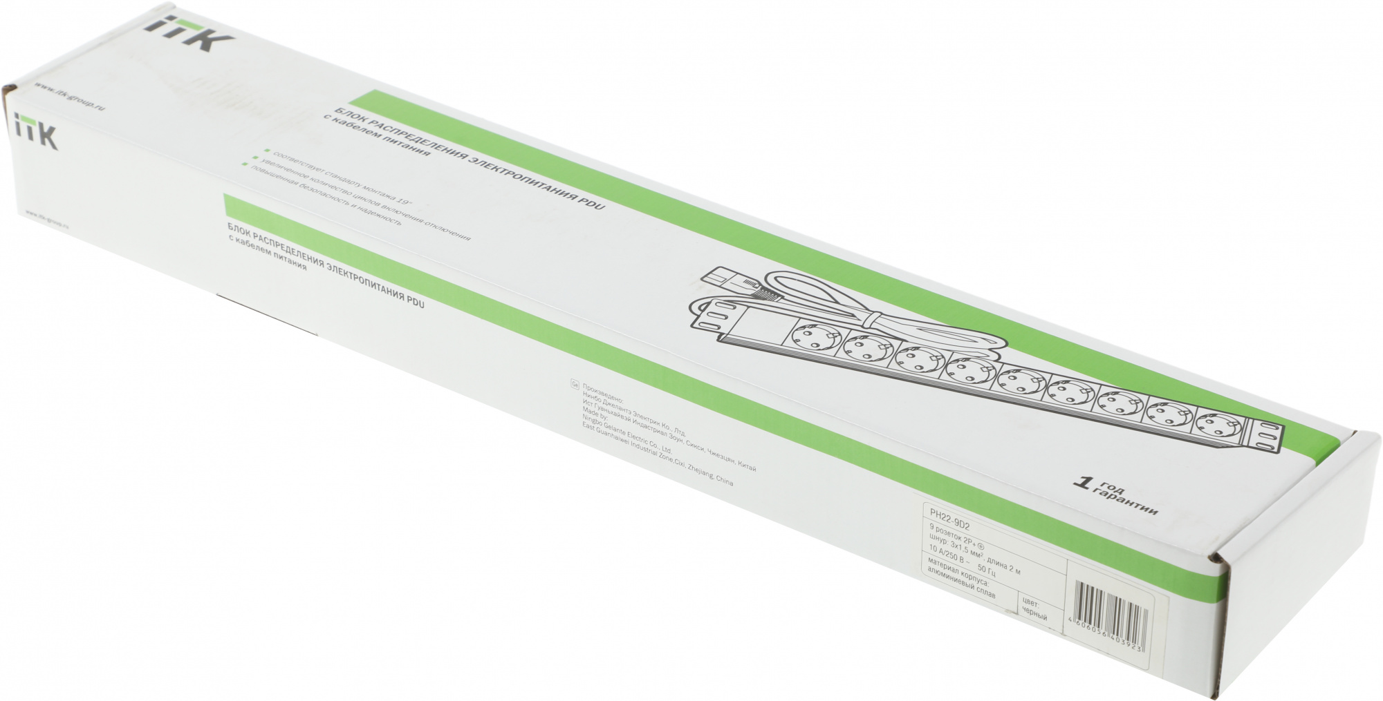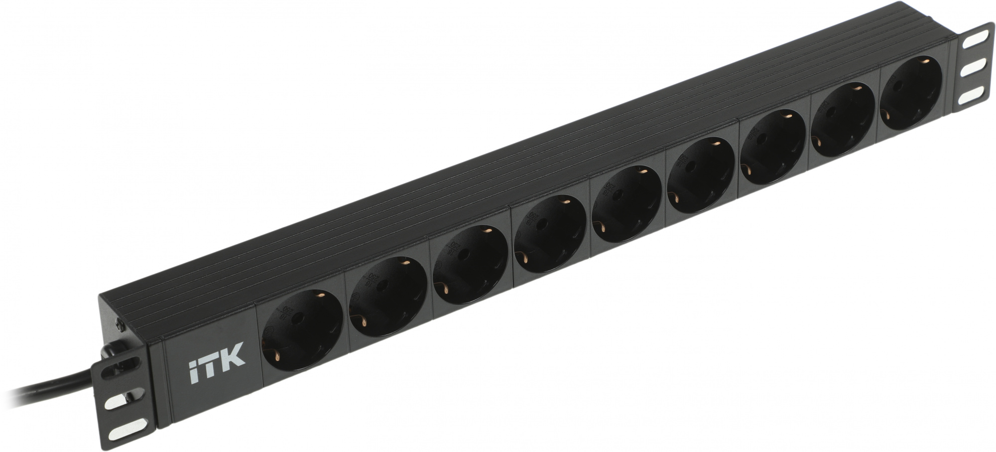 Блок розеток ITK - PH22, 16A, in (250V 1xIEC-320 C14), out ( 9xSchuko), 2 м, Горизонтальный, 1U, цвет чёрный, PH22-9D2