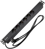 Блок розеток IEK - PH21-6D3, 16A, in (220V 1xIEC-320 C14), out (220V 6xSchuko), Горизонтальный, 1U, PH21-6D3