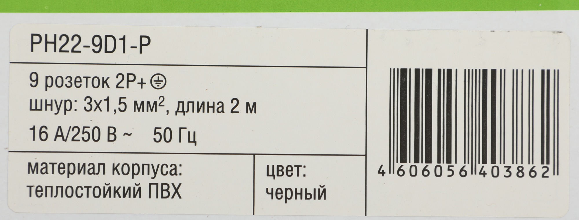 Блок розеток IEK - PH22-9D1-P, 16A, in (220V Сетевой шнур (Schuko)), out (220V 9xSchuko), Горизонтальный, 1U, PH22-9D1-P