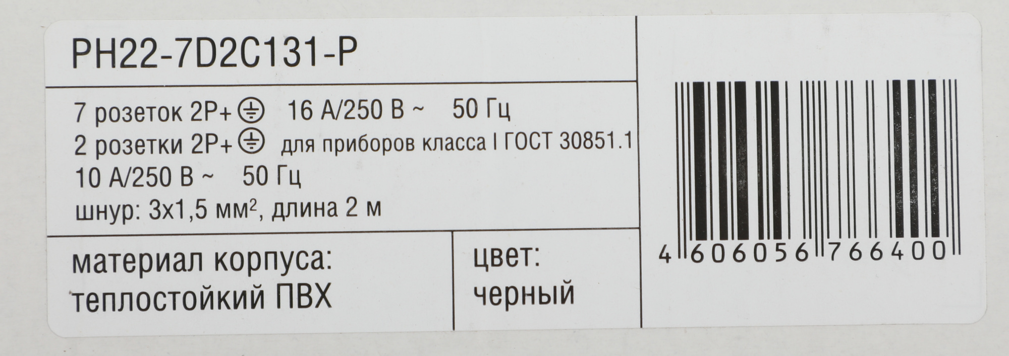 Распределитель питания ITK - PH22, 16A, in (Сетевой шнур (Schuko)), out ( 7xSchuko 2xIEC-C320 C13), 2 м, Горизонтальный, 1U, PH22-7D2C131-P