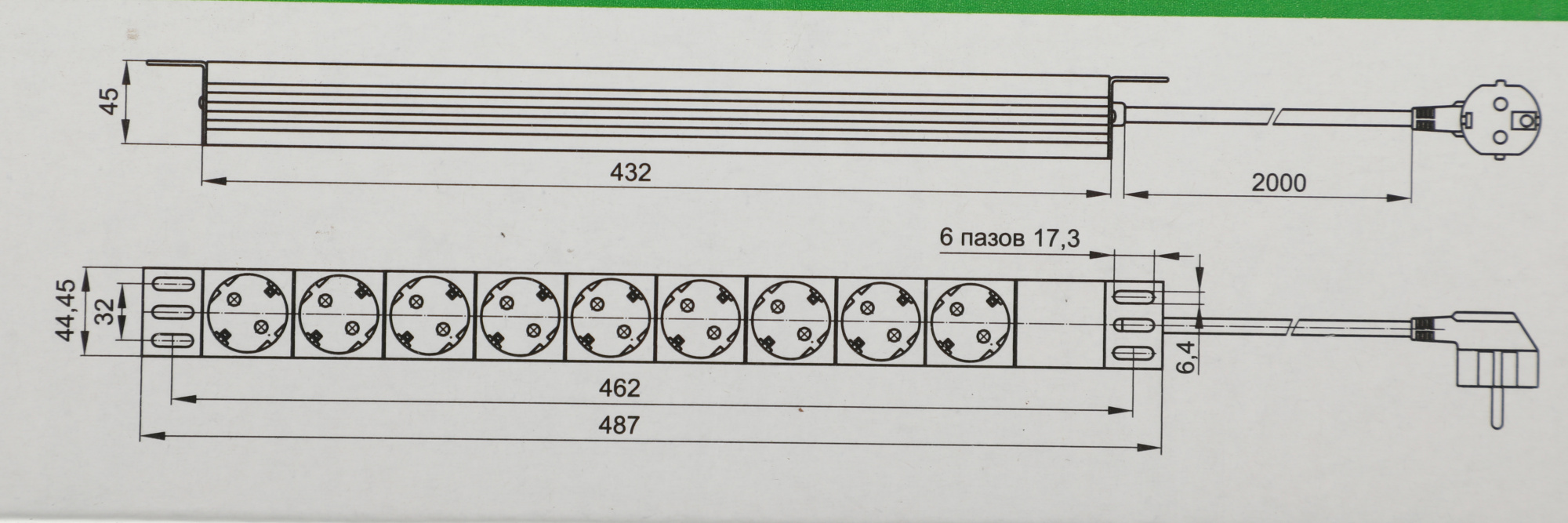 7 розеток EU + 2xIEC C13. Нагрузка до 20А, индикация напряжения. Крепление в 1U, компактный дизайн.