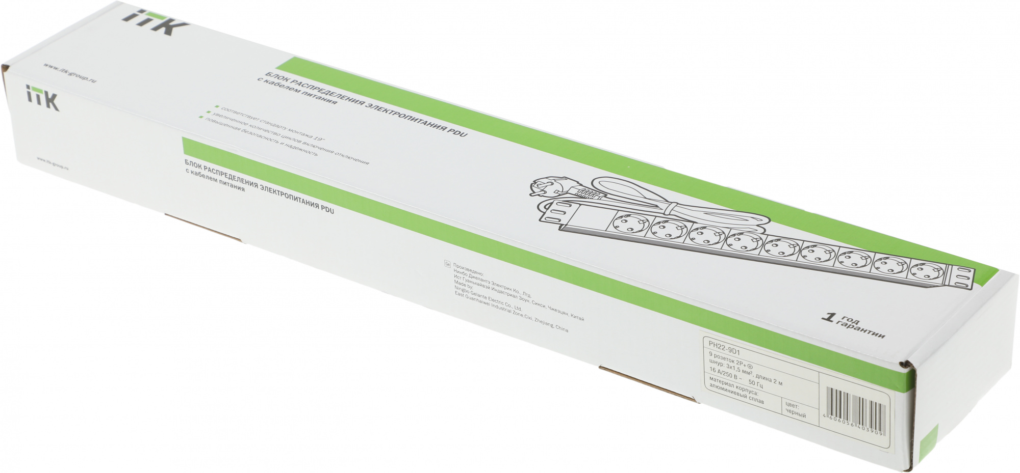 Распределитель питания ITK - PH22, 16A, in (Сетевой шнур (Schuko)), out ( 9xSchuko), 2 м, Горизонтальный, 1U, PH22-9D1