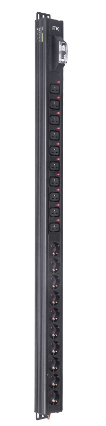 Распределитель питания ITK - PV1101, 16A, in (250V 1xIEC-320 C20), out ( 10xSchuko 10xIEC-C320 C19), Вертикальный, автомат, 24U, цвет чёрный, BS-PV70-10D-10C19-11