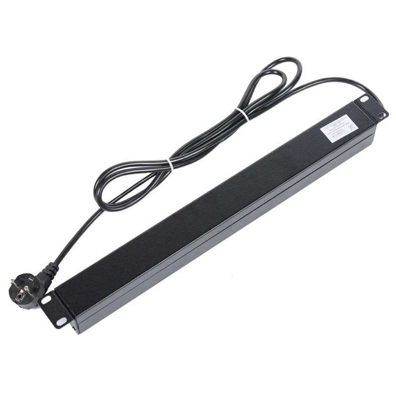 Блок розеток ЦМО - БР-9П-Ш, 10A, in (220V Сетевой шнур (Schuko)), out (220V 9xSchuko), 2 м, Горизонтальный, 1U, цвет чёрный, БР-9П-Ш-9005