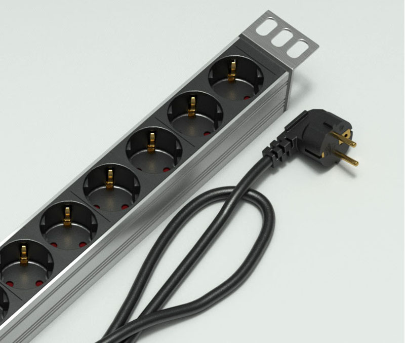 Блок розеток ЦМО - Rem-16, 16A, in (220 - 250V Сетевой шнур (Schuko)), out (220 - 250V 8xSchuko), 3 м, Горизонтальный, выключатель, 1U, цвет серый, R-16-8S-V-440-3