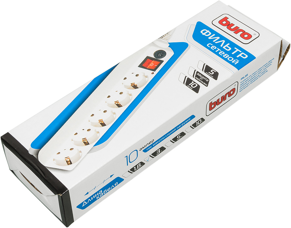 Выбрать товарыСетевой фильтр BURO - 500SH, 3 м, розеток Schuko-5, 10A, белый, 500SH-3-W