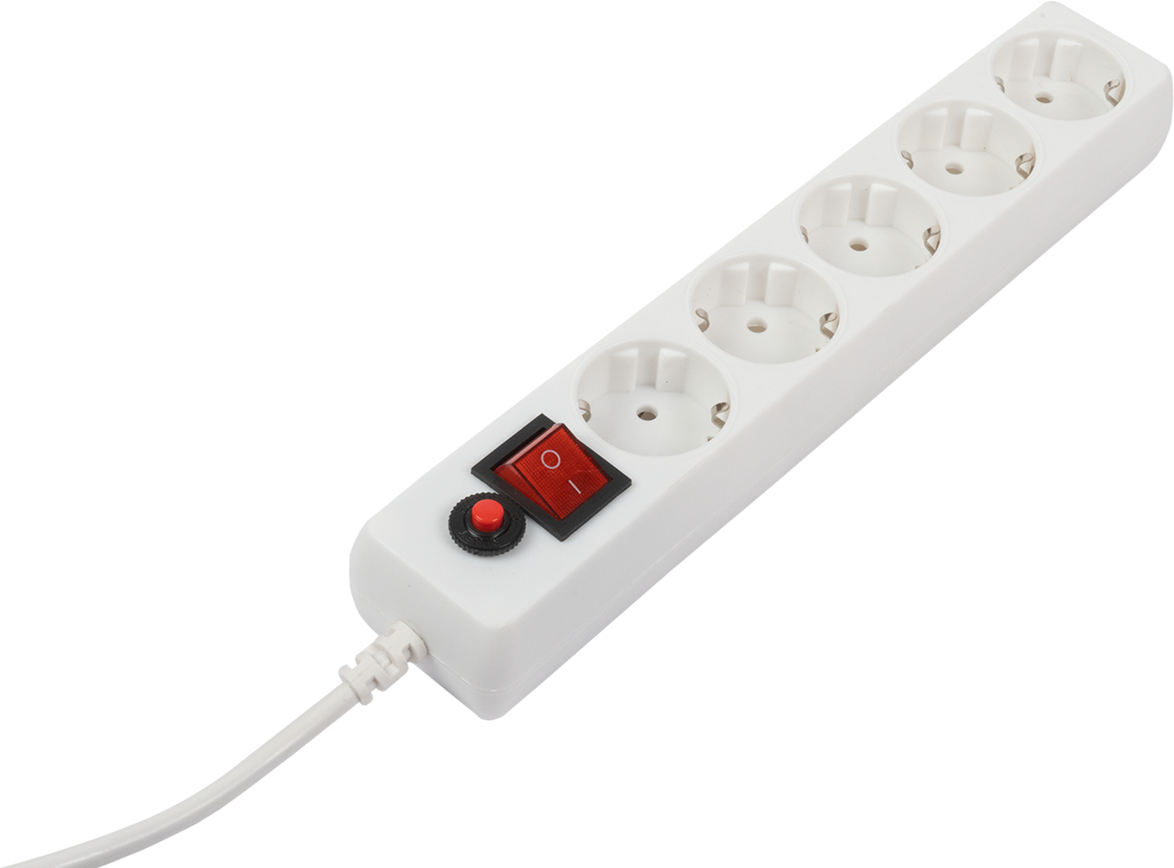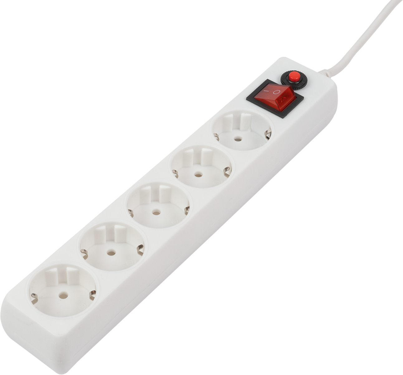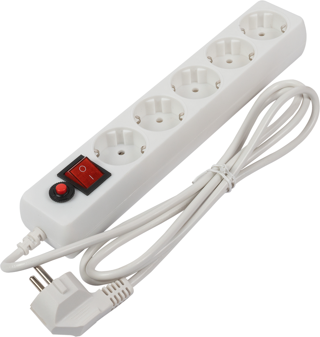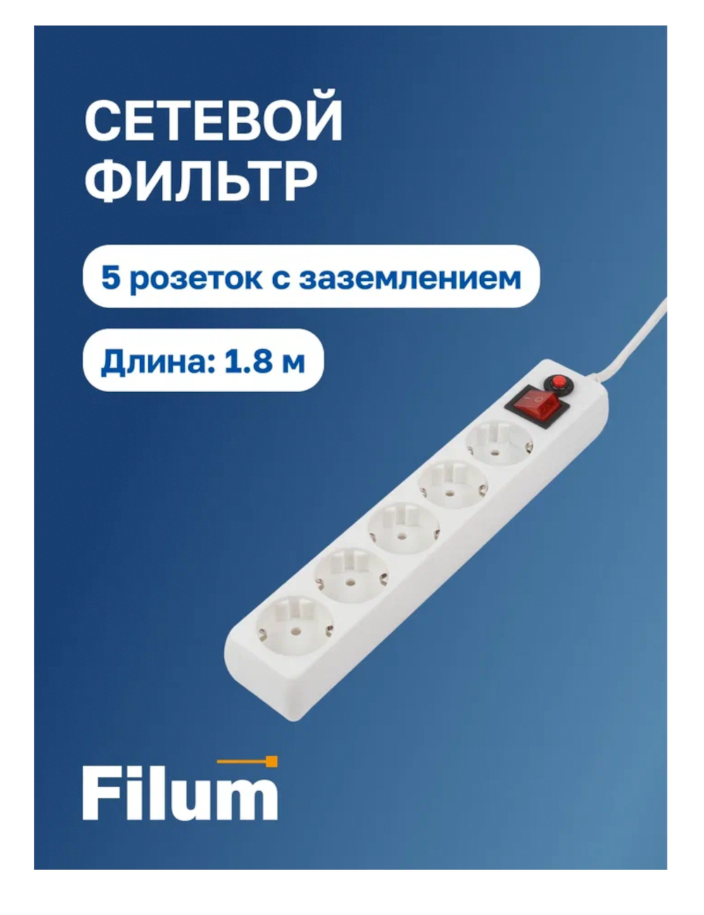 Белый сетевой фильтр на 3 розетки, 1,8 м провода: достаточно для стандартного размещения, разъемы собраны добротно, выключение всех подключенных устройств одним нажатием.