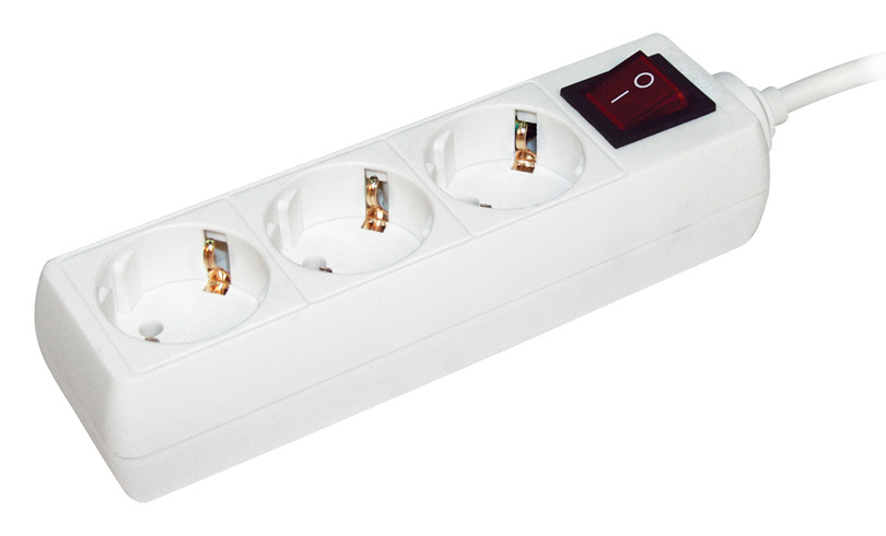 Удлинитель 3 розетки, 3 м, белый, возможно с небольшой защитой (ZK?). Корпус пластик, кабель 16 А. Лёгко разместить в комнате. Для мелкой домашней электроники в самый раз.