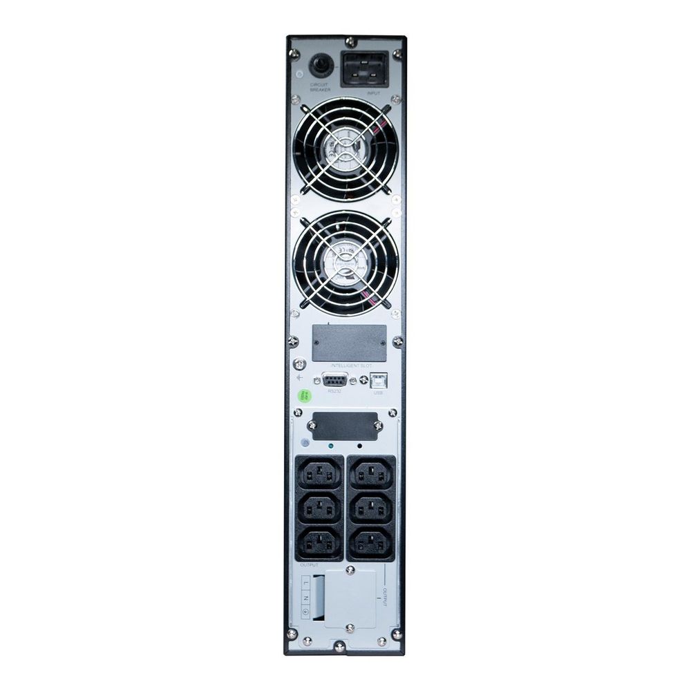 Rackline Pro 3000i 2U уверенно защищает критичные нагрузки: двойное преобразование и Hot-Swap батареи дают беспрерывный резерв. При полной нагрузке время автономии около 8 минут. ЖК-дисплей и навигационные кнопки упрощают настройку.