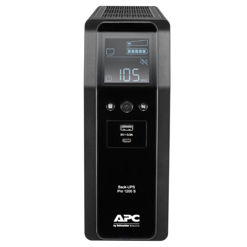 ИБП APC by SE - Back-UPS PRO 1200 ВА/720 Вт, Line-Interactive, in (230V 1xIEC-320 C14), 8xIEC-320 C13, LCD, Tower, цвет чёрный, no Power cord, BR1200SI