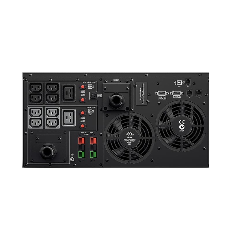 Флагманская модель серии PR: 6000 ВА, форм-фактор 5U. Подходит для крупных серверных, активного сетевого оборудования. Линейно-интерактивная технология с высокой эффективностью, есть режим расширенного AVR. LCD-панель информативна, всё под рукой.