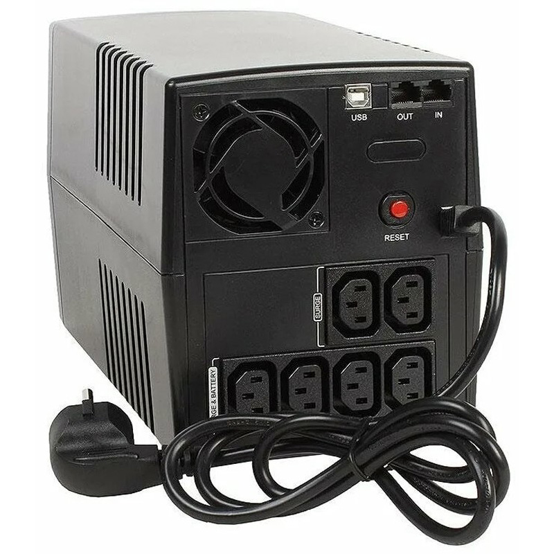 Аналогичная модель, 2200 ВА, возможна другая модификация розеток (EiG. Линейно-интерактивная схема, при сбое сети работает ещё пару минут. Звуковой сигнал средний, дисплея нет, но индикаторы чёткие. Для офиса или дома, где нужно больше мощности.