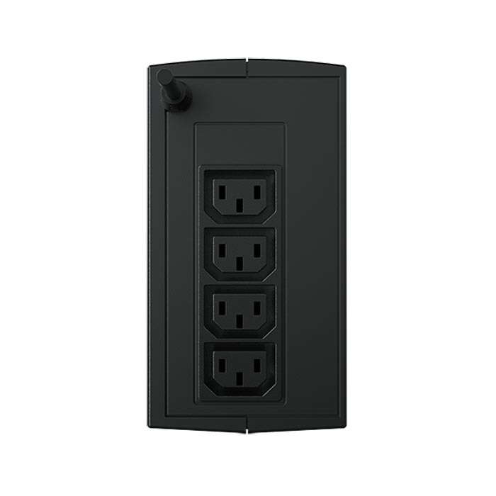 Аналог предыдущей модели, но с иными розетками. Предназначен для защиты небольшой домашней или офисной техники. Переход на батарею плавный, без скачков напряжения. При коротких отключениях в сети продолжает питать компьютер и периферию.