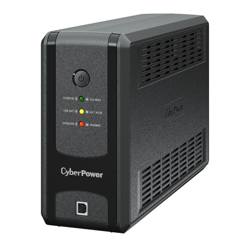 Cyberpower UT 675 ВА/360 Вт UT675EIG - линейно-интерактивный источник бесперебойного питания, подходящий для использования с компьютерами, мониторами и оргтехникой. Модель обеспечивает защиту локальной сети и телефонной линии. Подключение к компьютеру осуществляется через интерфейс USB. Корпус выполнен в пьедестальном исполнении, ИБП легко займет свое место на полу.
