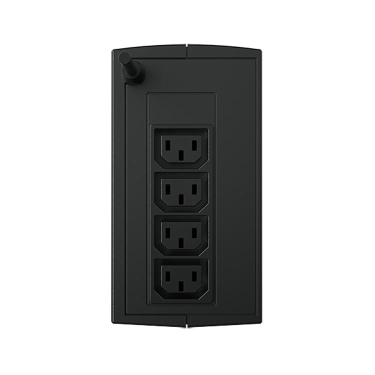 Версия с другими разъёмами, но те же 875 ВА. Подходит для небольшого набора техники: ПК, роутер, монитор. При выключении сетевого питания мгновенно переключается на батарею. Шум невысок, особенно при обычном режиме работы. Корпус эргономичный.