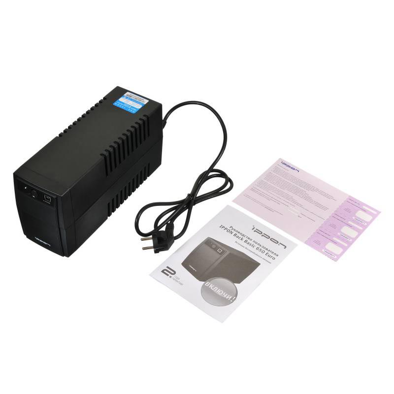 ИБП Ippon - Back Basic 650 ВА/360 Вт, Line-Interactive, in (220V Сетевой шнур (Schuko)), 2xSchuko, Tower, Euro, цвет чёрный, 383323