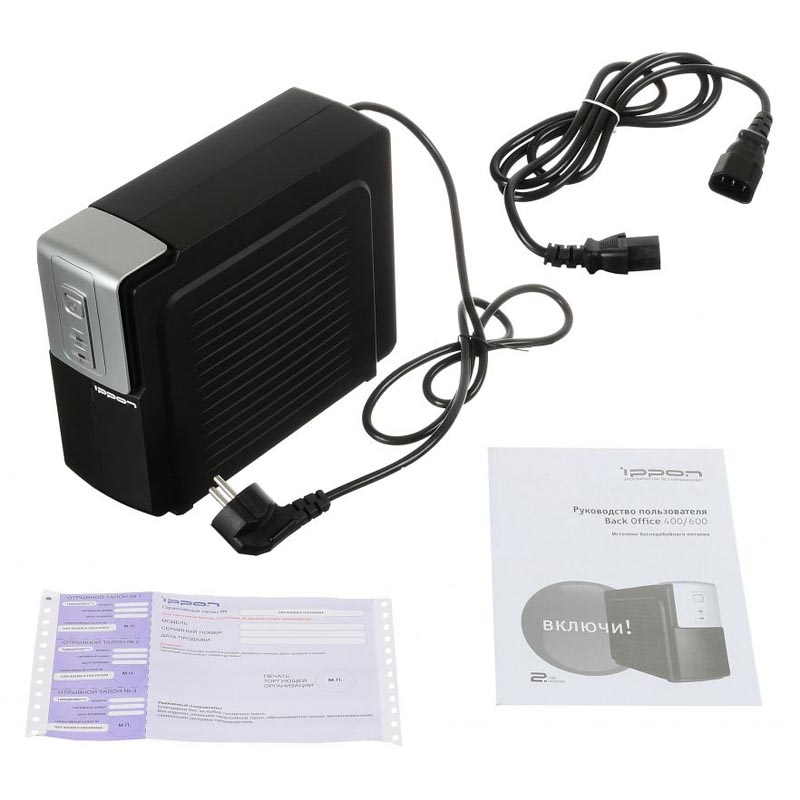 ИБП Ippon - Back Office 600 ВА/300 Вт, OFF-Line, in (230V Сетевой шнур (Schuko)), 4xIEC-320 C13, Tower, цвет чёрный, 74263