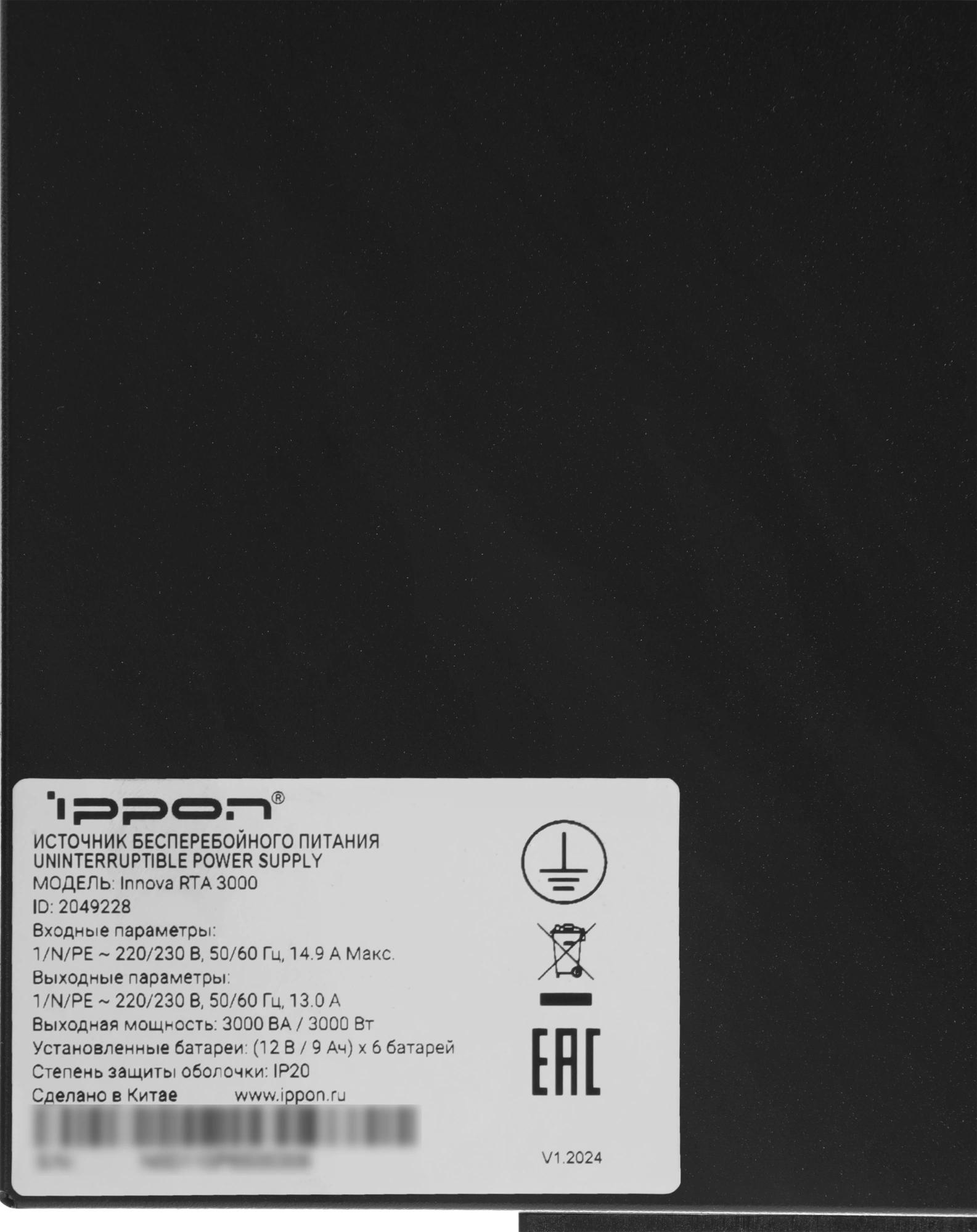 ИБП Ippon - Innova RTA 3000 3000 ВА/3000 Вт, On-Line, in (1xIEC-320 C20), 8xIEC-320 C13, 1xIEC-320 C19, LCD, Rack/Tower, 2U, цвет чёрный, 2049228
