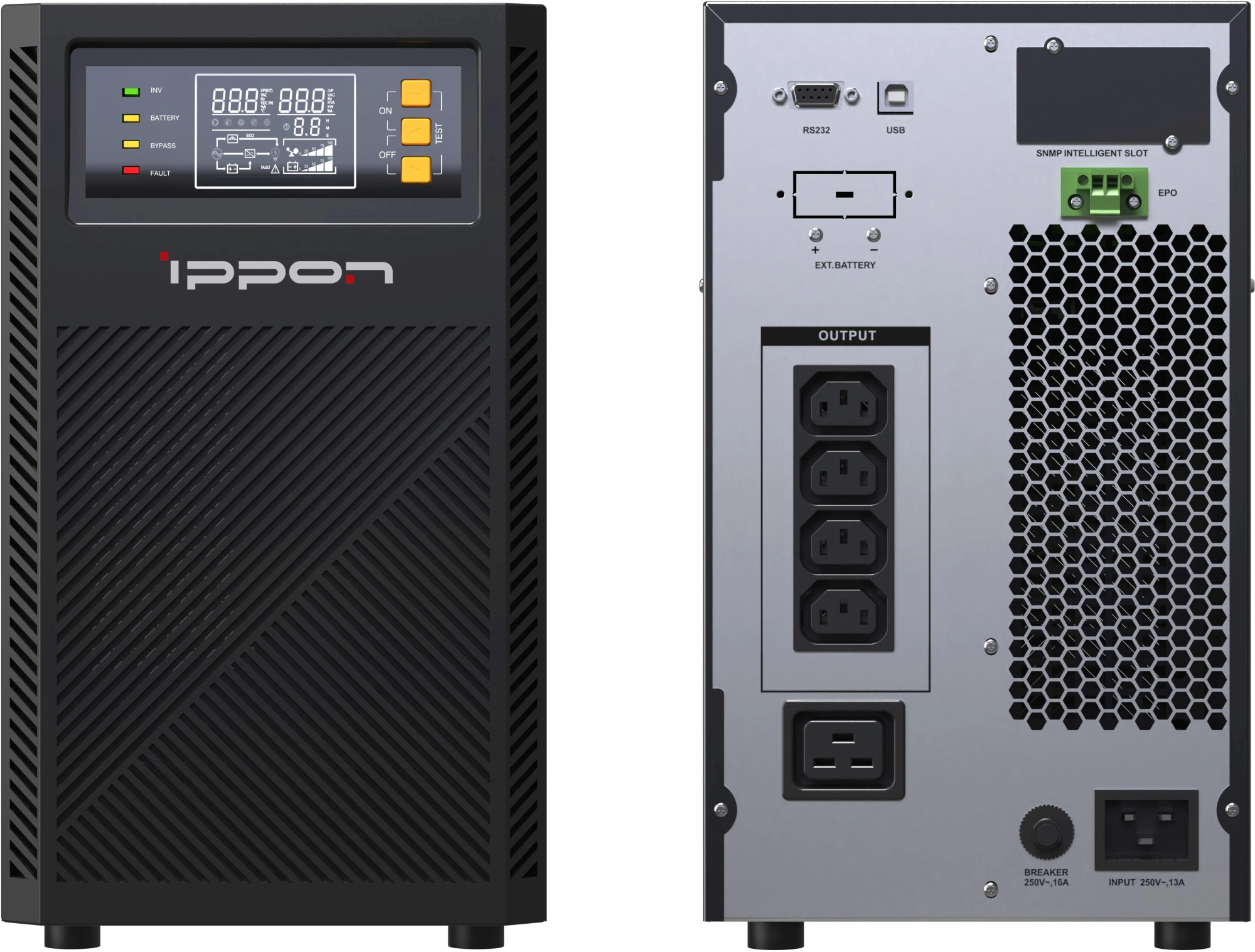ИБП Ippon - Innova TA 2000 ВА/2000 Вт, On-Line, in (1xIEC-320 C20), 4xIEC-320 C13, 1xIEC-320 C19, LCD, Tower, цвет чёрный, 2048802