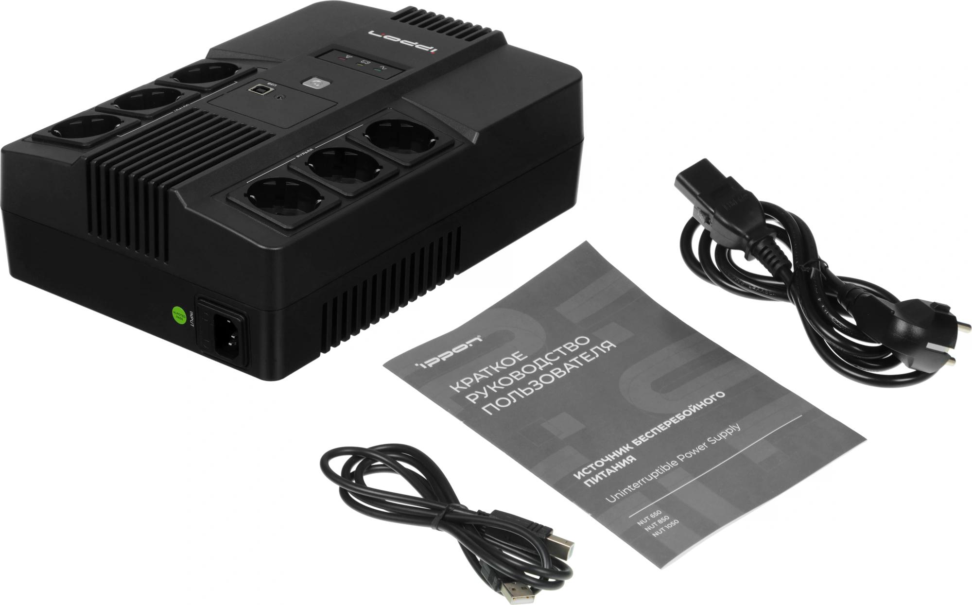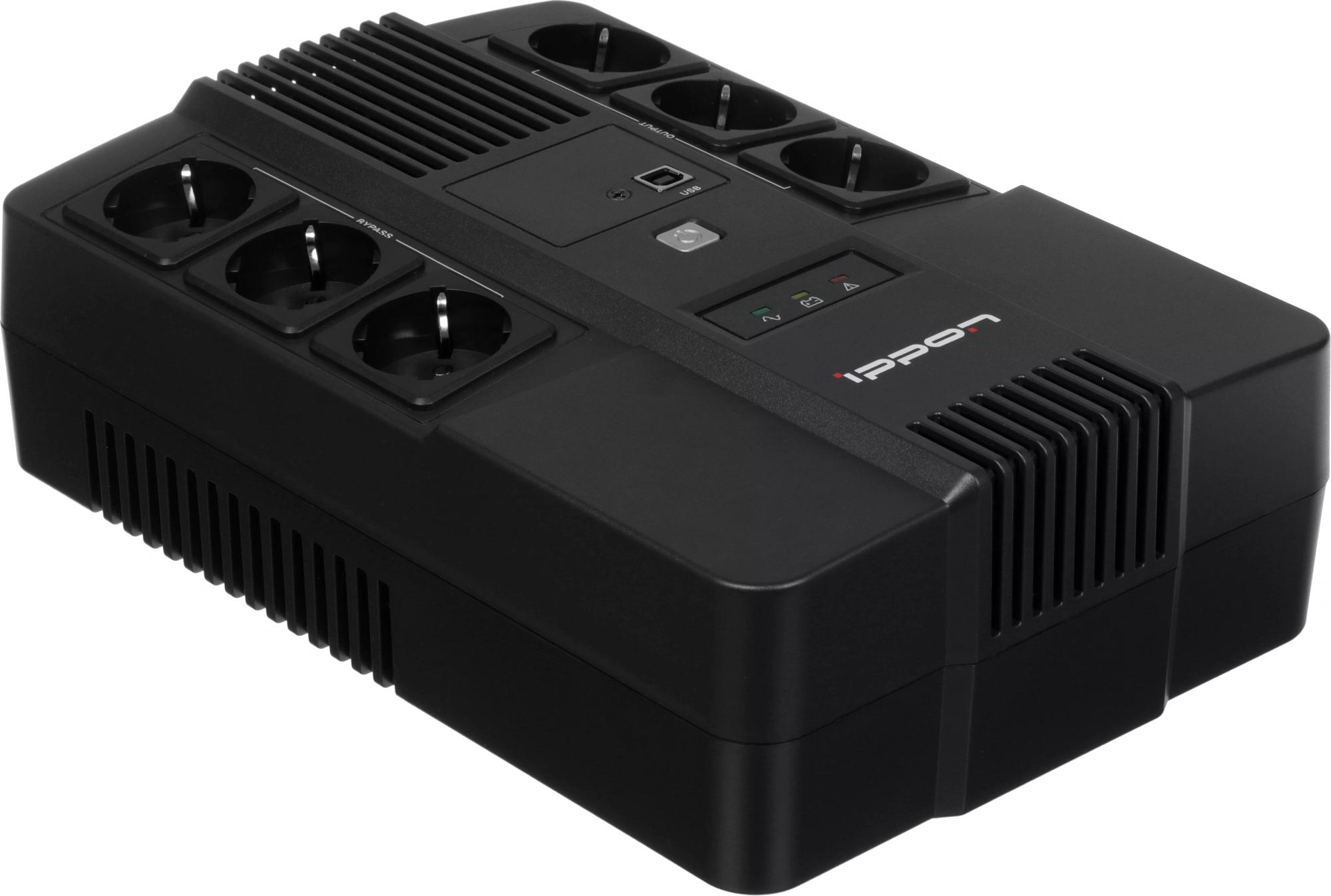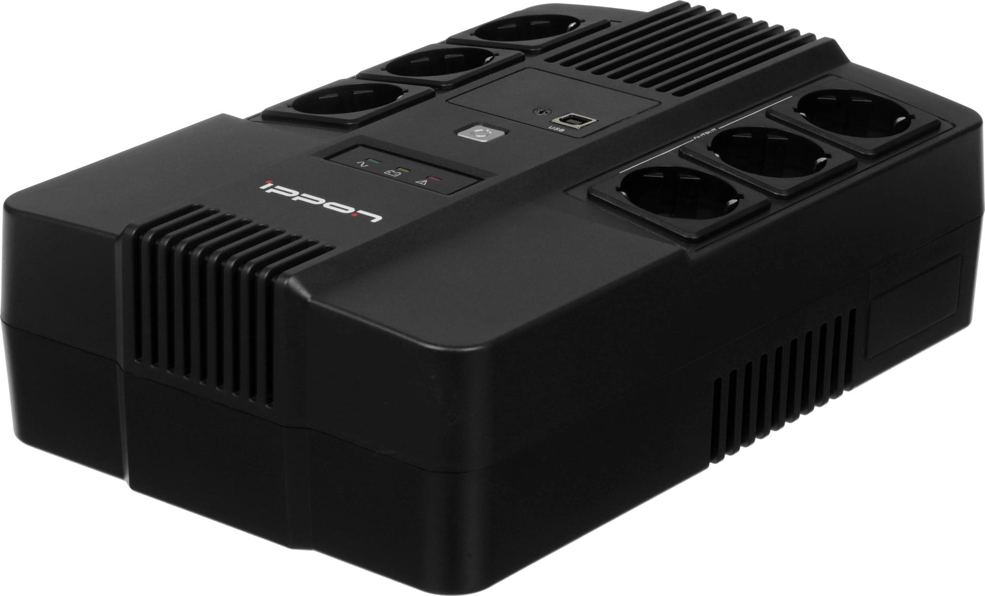 ИБП Ippon - Nut 650 650 ВА/360 Вт, Line-Interactive, in (1xIEC-320 C14), 6xSchuko, Brick, цвет чёрный, 2050150