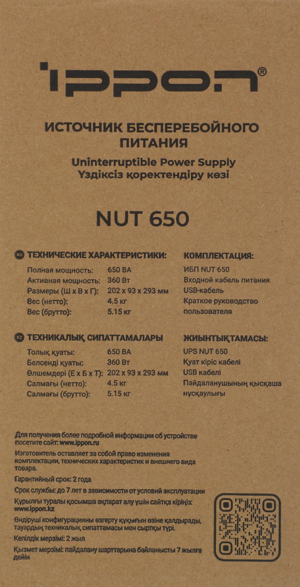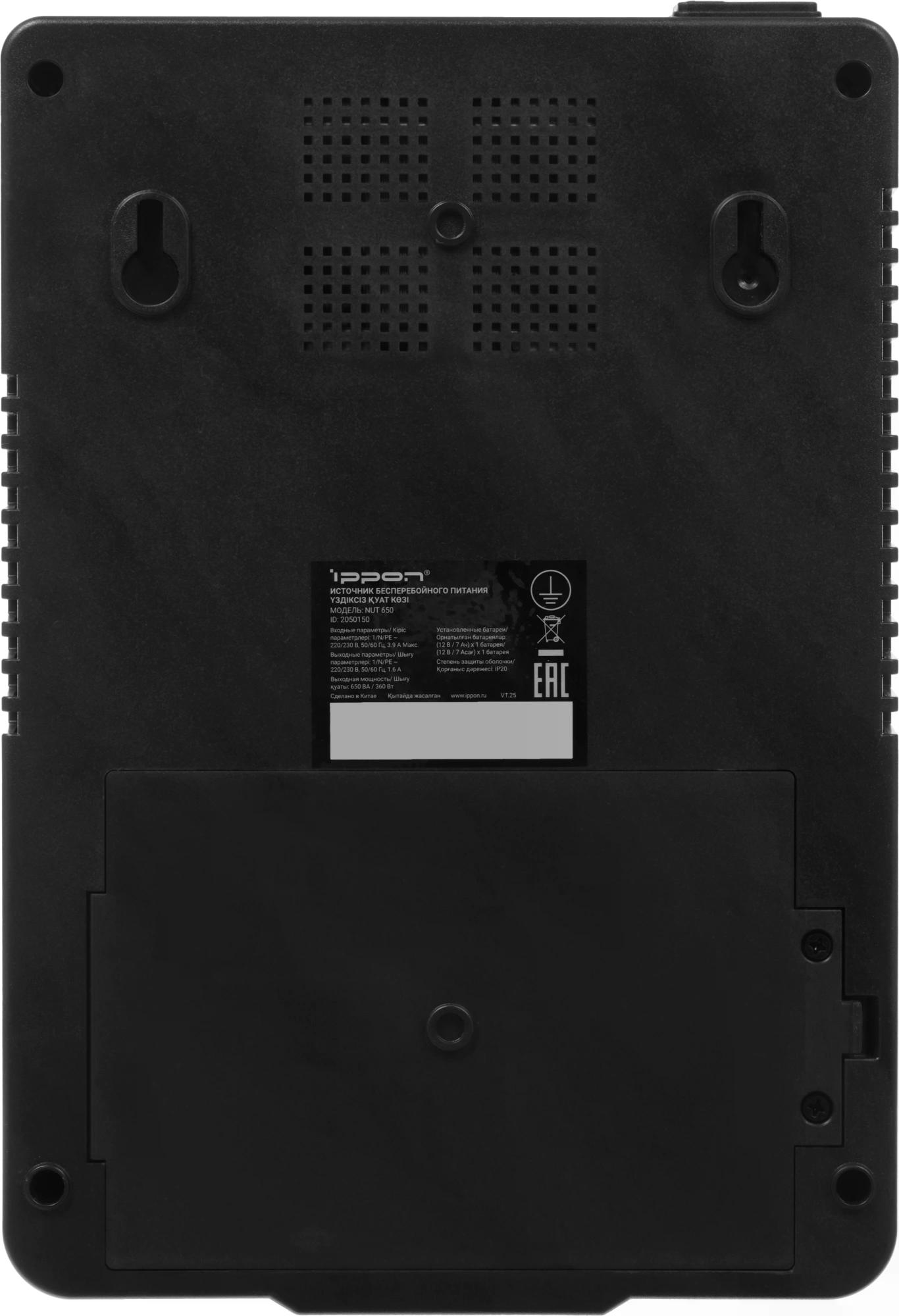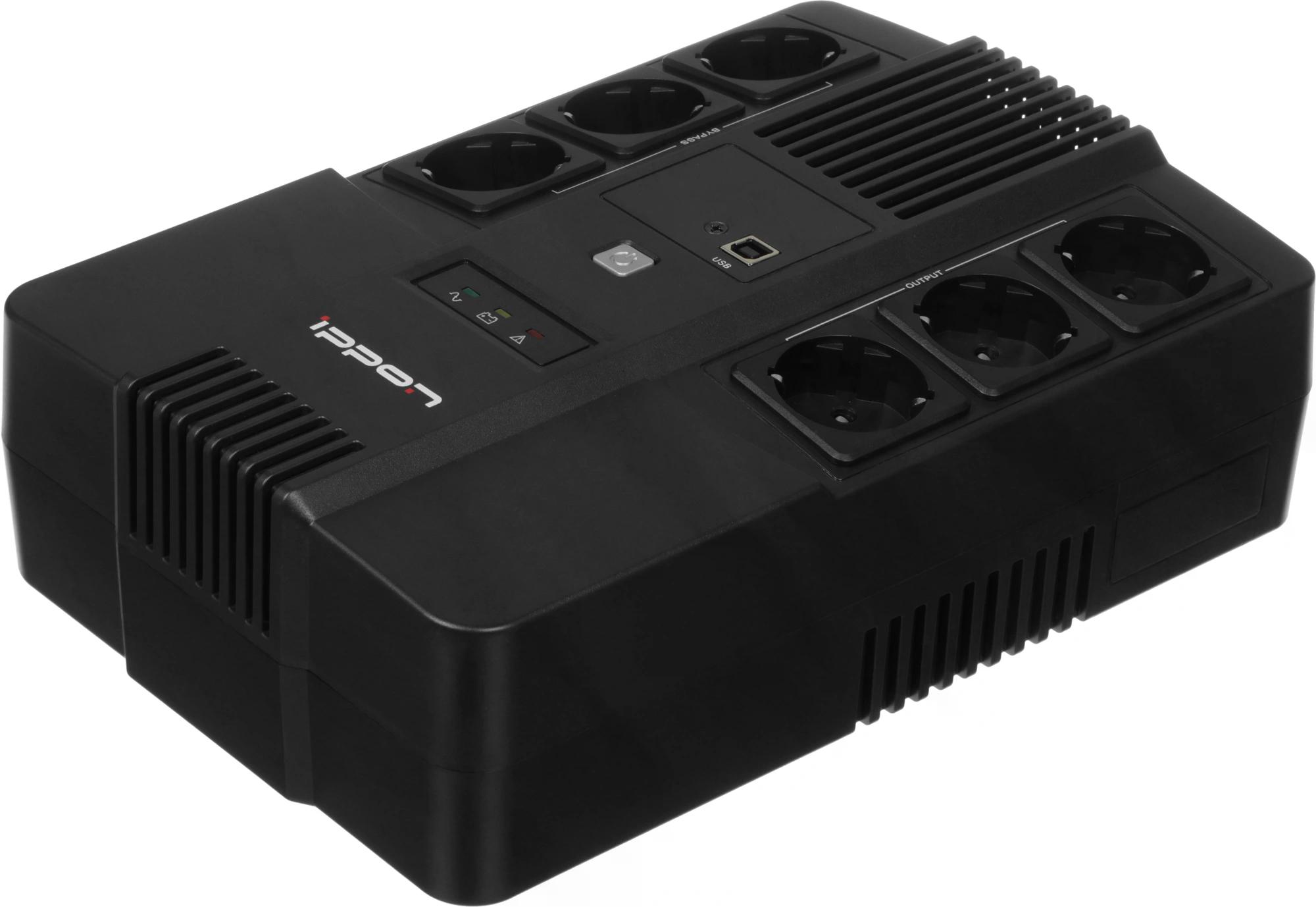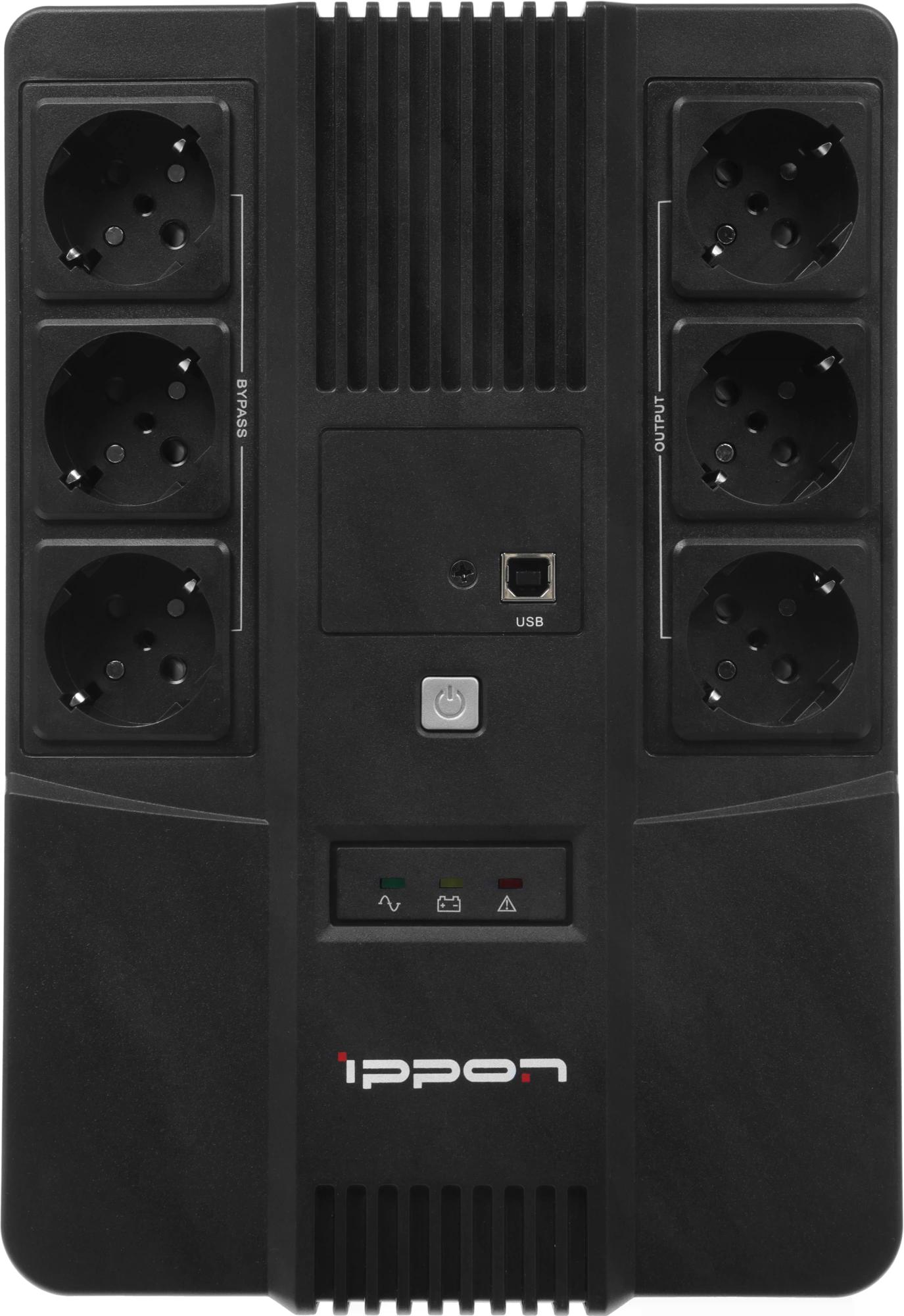 ИБП Ippon - Nut 650 650 ВА/360 Вт, Line-Interactive, in (1xIEC-320 C14), 6xSchuko, Brick, цвет чёрный, 2050150