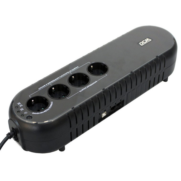 Убедительно смотрится в подобном форм-факторе. Когда другие производители выпускают ИБП непонятно почему огромного размера, в неудобных корпуса, то Powercom сделал компактное и достаточно мощное решение (подключается устройств до 500 ватт, суммарно). Это дело ещё и на стенку повесить можно, если хочется. Встроен предохранитель и несколько видов защит: перегрузку, скачки напряжения переживёт запросто. Работает тихо и не греется.