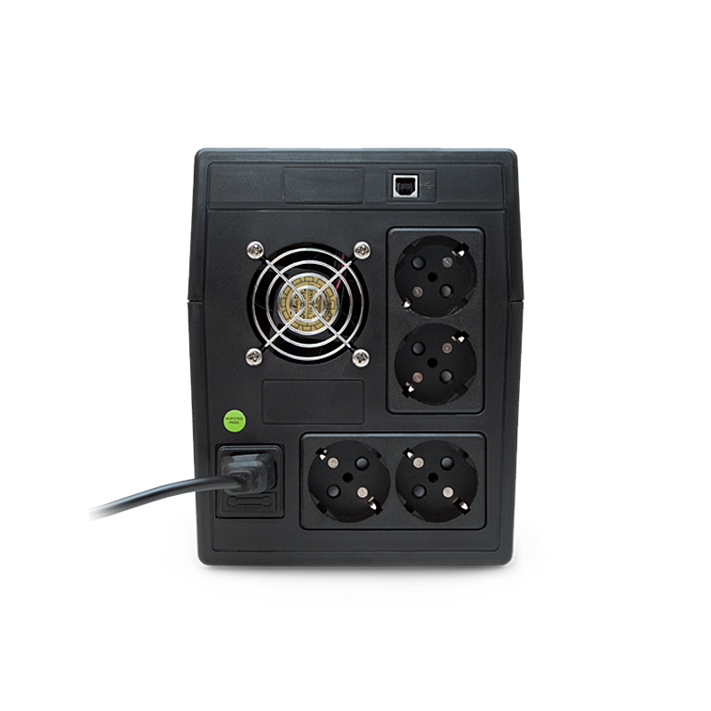 Модель линейки Back Pro Plus, 2000 ВА. Хороший баланс для офиса: тянет пару компьютеров и принтер, стабилизирует напряжение, при отключении сети переключается на батарею. Сигнализация адекватная, есть базовый дисплей. Уровень шума умеренный.