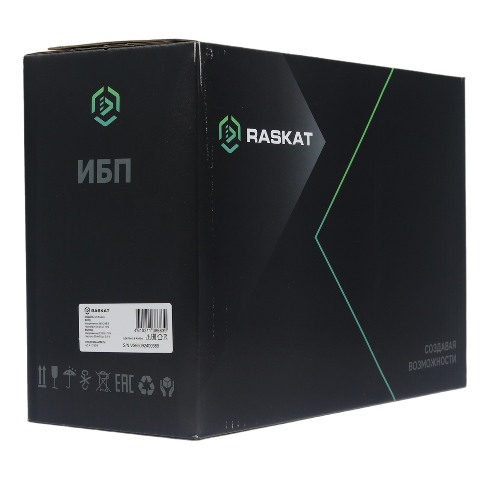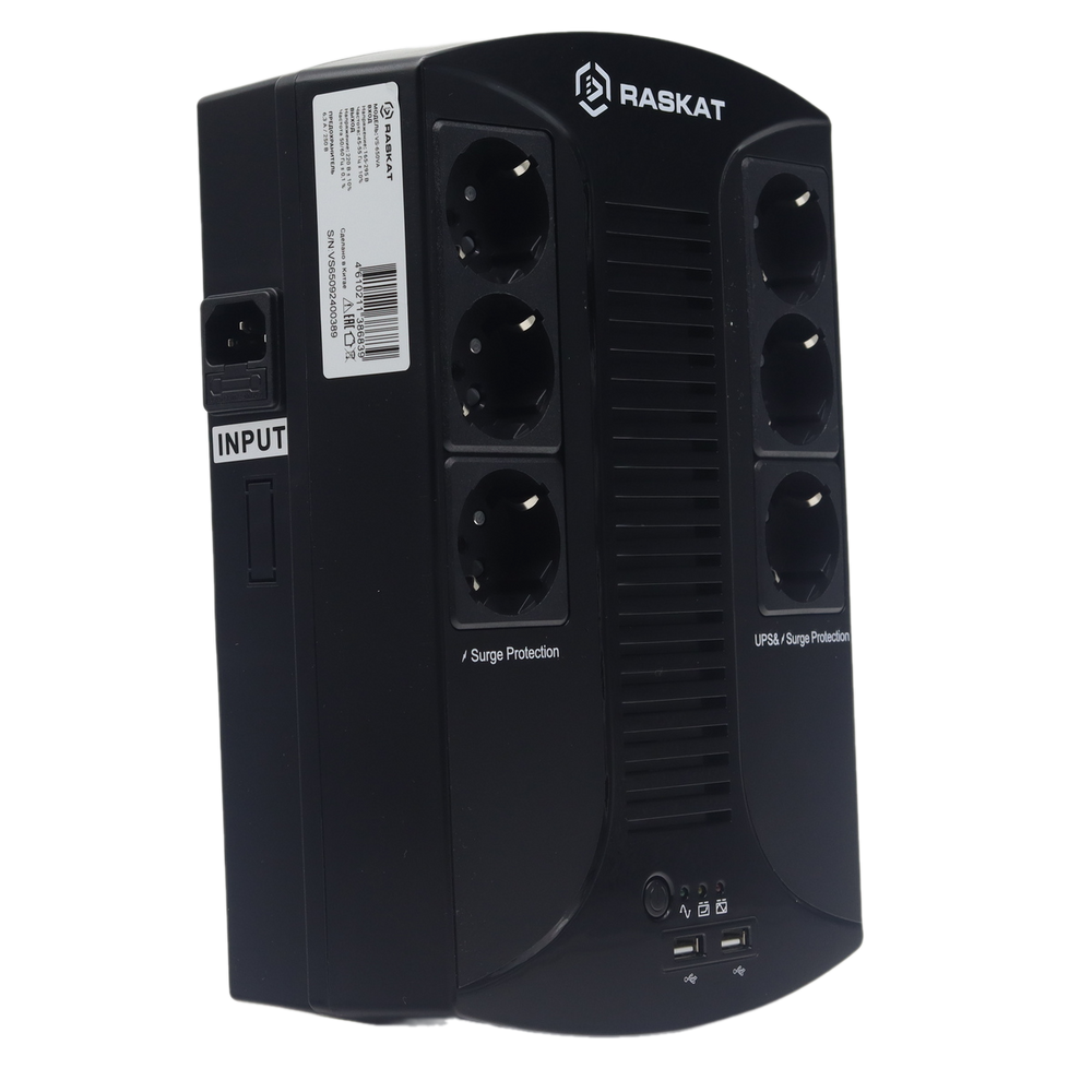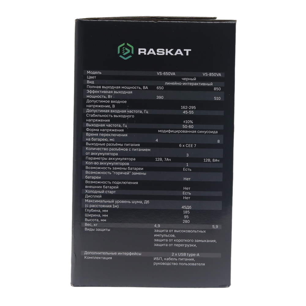ИБП Raskat - VS 650 ВА/390 Вт, Line-Interactive, in (220V 1xIEC-320 C14), 6xSchuko, Tower, цвет чёрный, VS-650VA