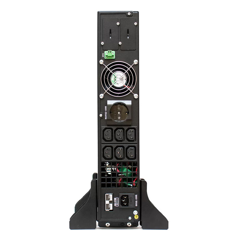 Форм-фактор 2U, 1000 ВА. Можно монтировать в телеком-стойку или ставить вертикально. Линейно-интерактивная защита, стабилизация напряжения. Дисплей на передней панели, переключение на батарею без рывков, несколько минут автономии при нагрузке.