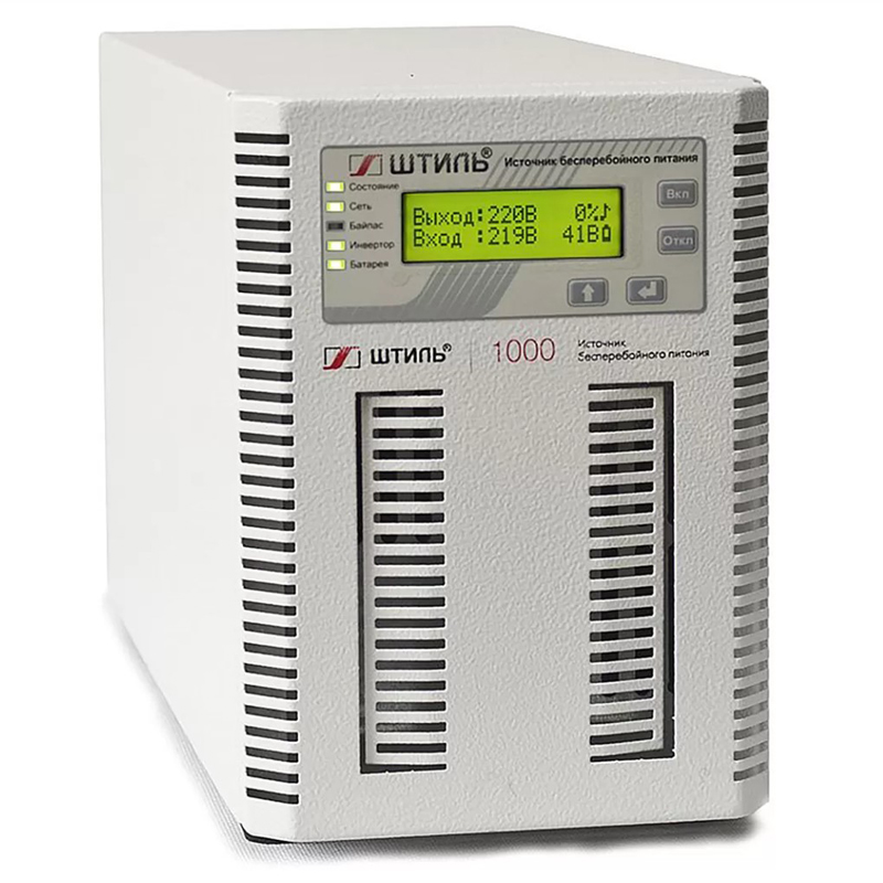 Серия ST на 1000 ВА, корпус башенный. Линейно-интерактивная технология с защитой от перегрузок. Удобен для классического рабочего места, где нужен запас на пару минут. При отключении питания звучит сигнал, переход плавный, не сбивает компьютер.