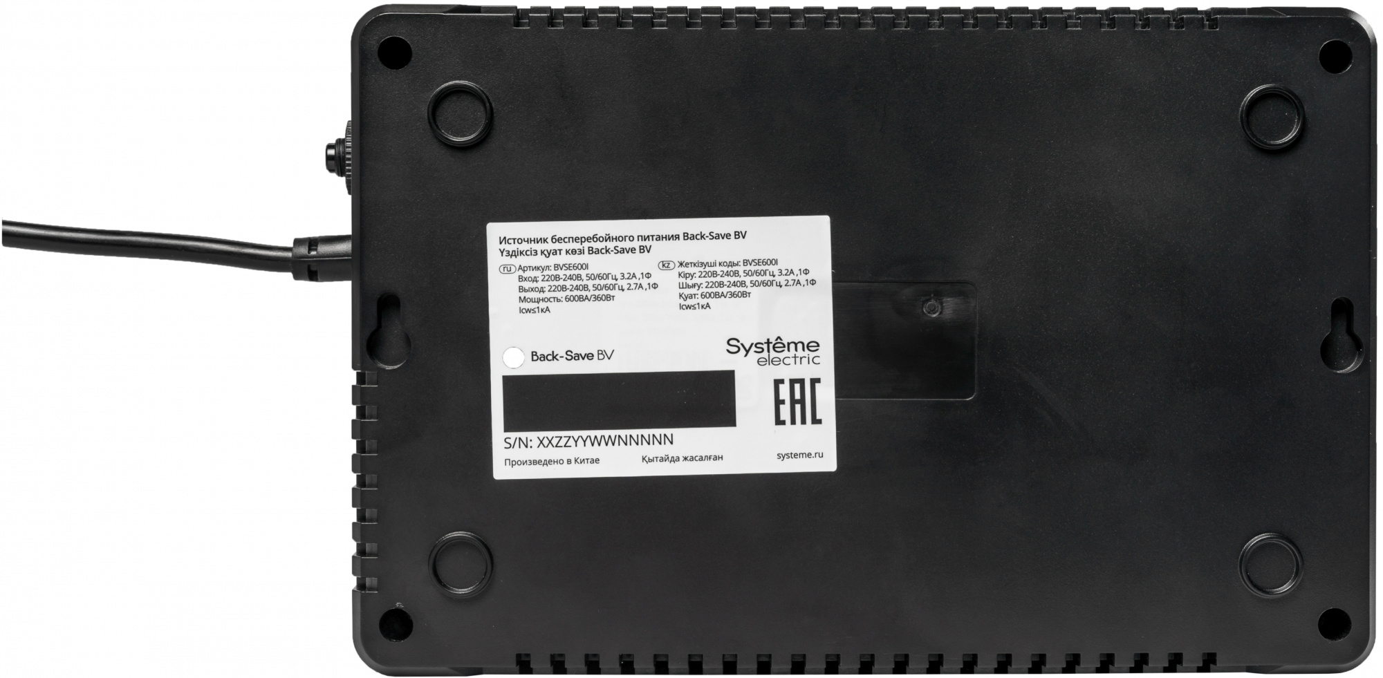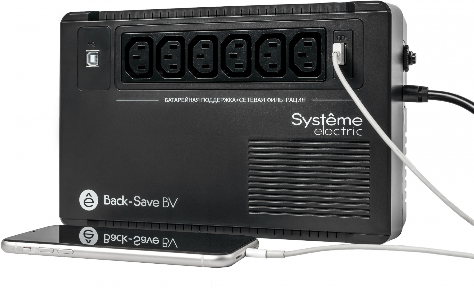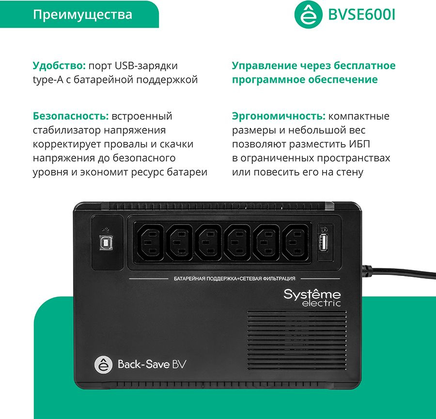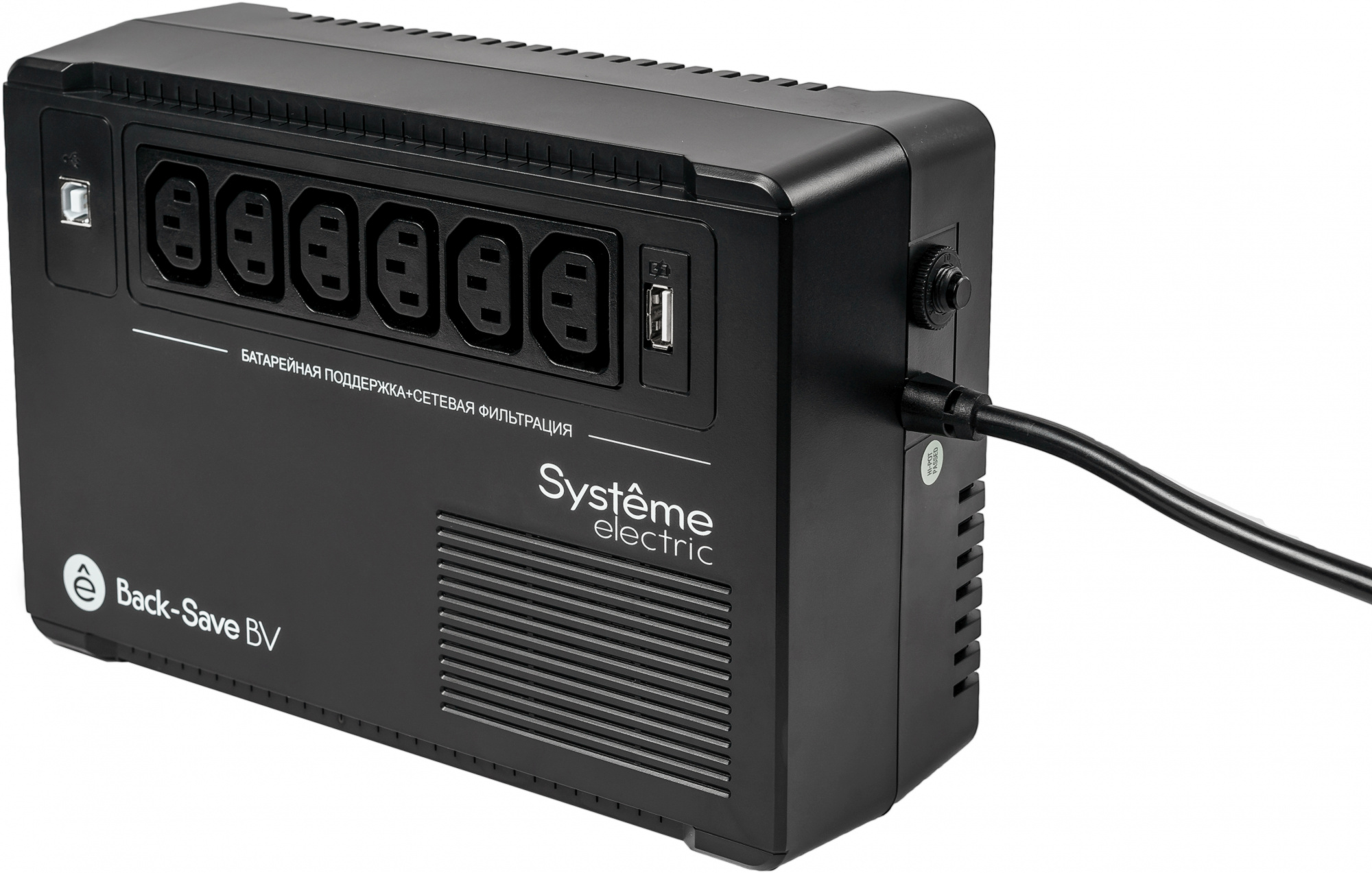 ИБП Systeme Electriс - Back Save BV 600 ВА/360 Вт, Line-Interactive, in (220V / 230V / 240V 1xIEC-320 C14), 6xIEC-320 C13, Brick, цвет чёрный, BVSE600I