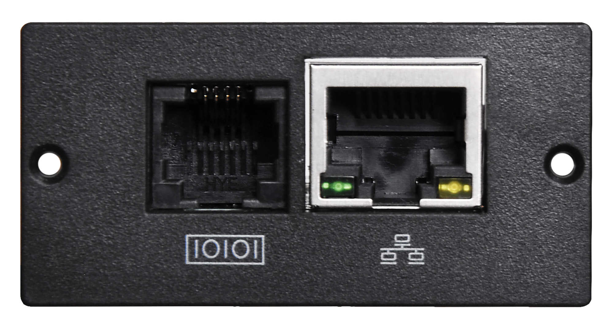 Добавляет сети и веб-интерфейс для удалённого мониторинга системы резервирования. Позволяет видеть уровень заряда, статусы и события через SNMP или браузер. Установка быстрая, ПО дружелюбное. Широкий функционал: от планирования выключений до журналирования ошибок.