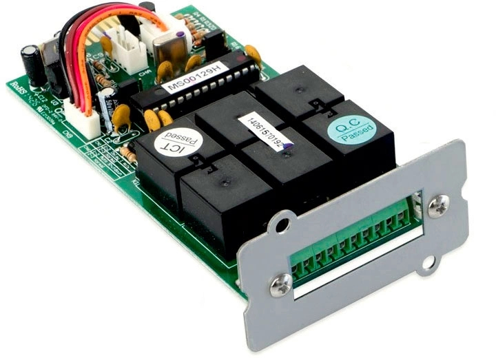 Плата сухих контактов: обеспечивает мониторинг и управление ИБП, интегрируется легко. Упрощает автоматизацию при сбоях питания.