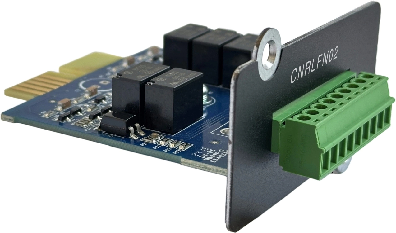 Карта «сухих контактов» (Relay) – даёт набор выходов (норм. ОК/Alarm) для интеграции в охранные, пожарные системы. Удобно, если нужно получать простейшие сигналы от UPS.