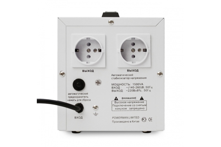 Стабилизатор Powerman - AVS-D 1500 ВА, 10А 120-280В in, 220V out, 1м, POWERMAN AVS 1500D
