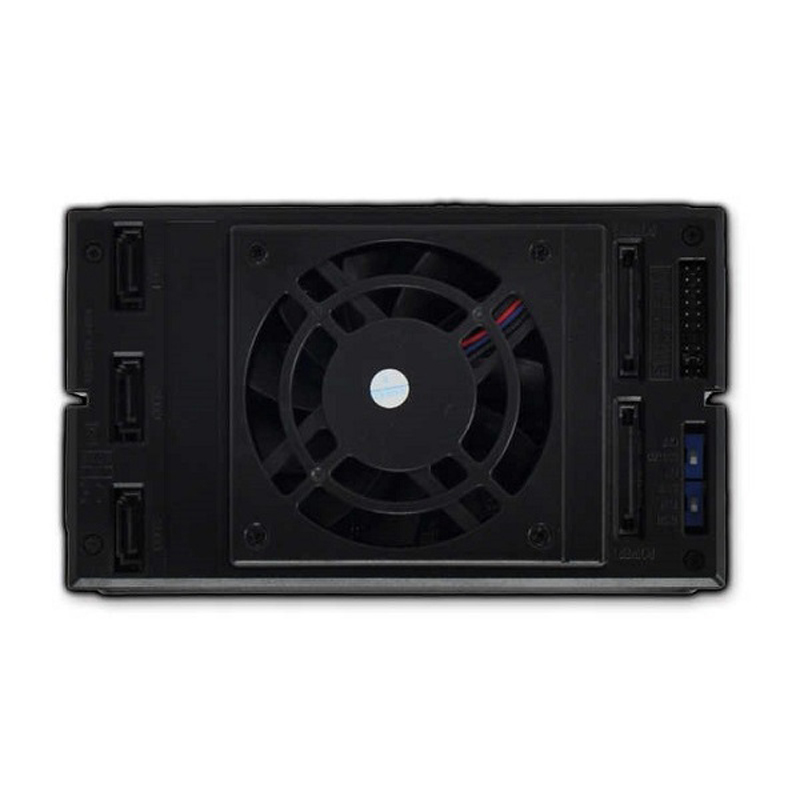 Отлично организовала три 3.5 диска в двух 5.25 слотах. Крепления надёжные, пластина не вибрирует. Тёплый воздух свободно выходит, так как предусмотрено пространство для циркуляции. Легко поставить или вынуть накопители. Оптимальное решение.