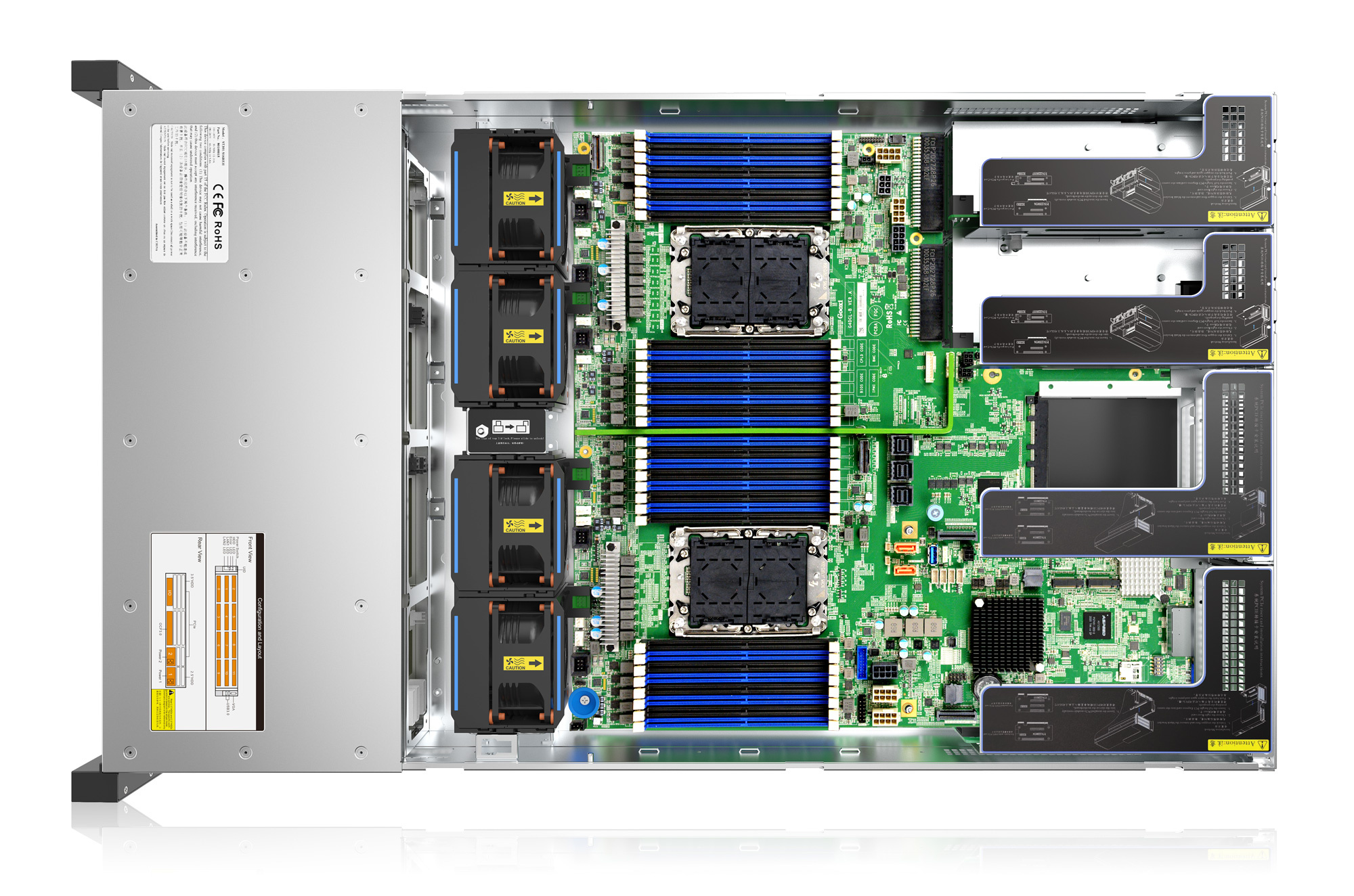 Rack-сервер G2212P 2U с 12 корзинами для 3,5″ дисков поразил простотой обслуживания: лотки выдвигаются нажатием, аппаратный RAID автоматически балансирует массив. Вентиляция без лишнего шума сохраняет оптимальную температуру даже при полной загрузке.