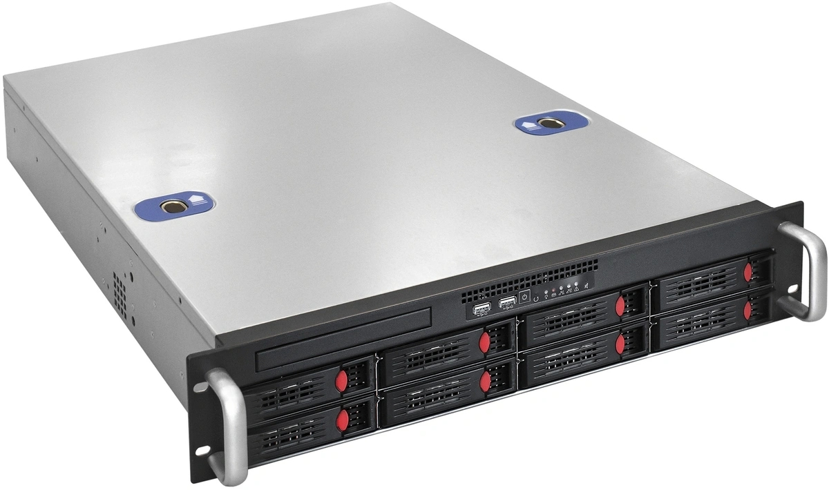 Это решение для малых ЦОДов идеально: компактный форм-фактор 2U экономит место, индикаторы состояния дисков позволяют быстро выявлять сбои. Металлический каркас и стандарт 19″ обеспечивают универсальность монтажа.
