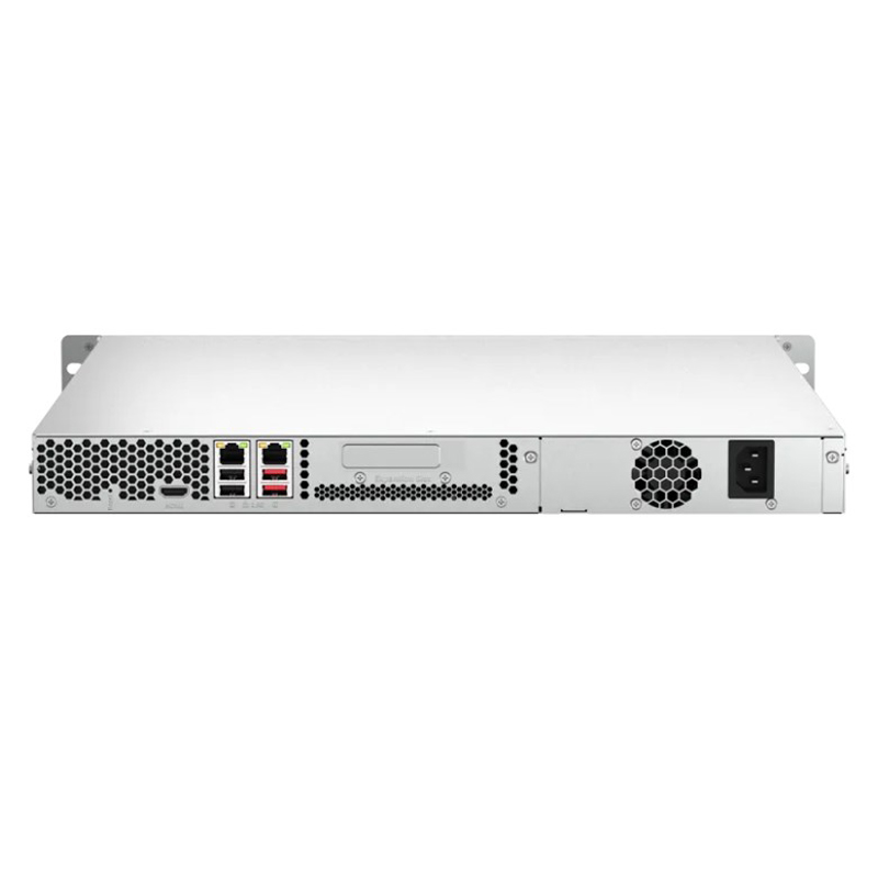 Рэковый формат 1U, 4 диска, Intel Celeron N5105, 8 ГБ. Порты 2.5GbE, быстрая передача. Docker и виртуалки поддерживаются, QTS классический. Установка в небольших серверных, шум ниже среднего для 1U.