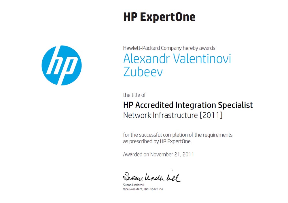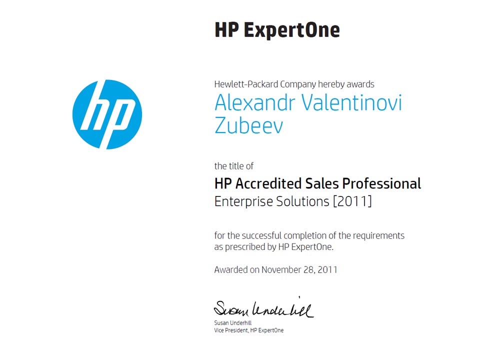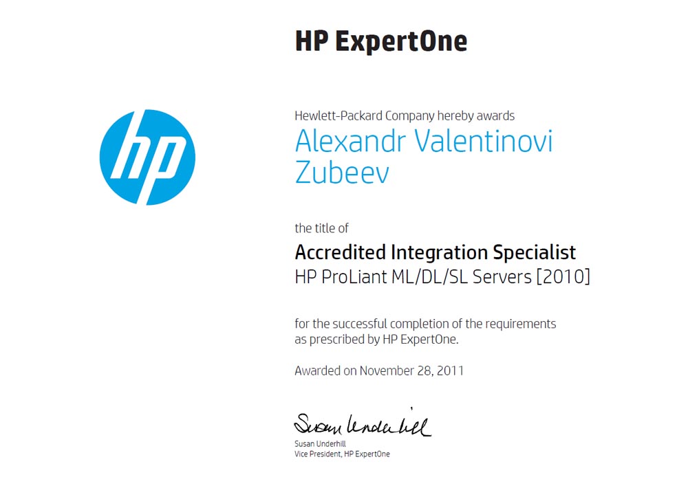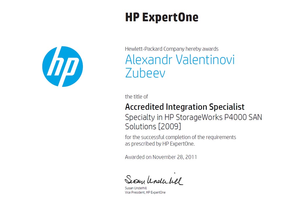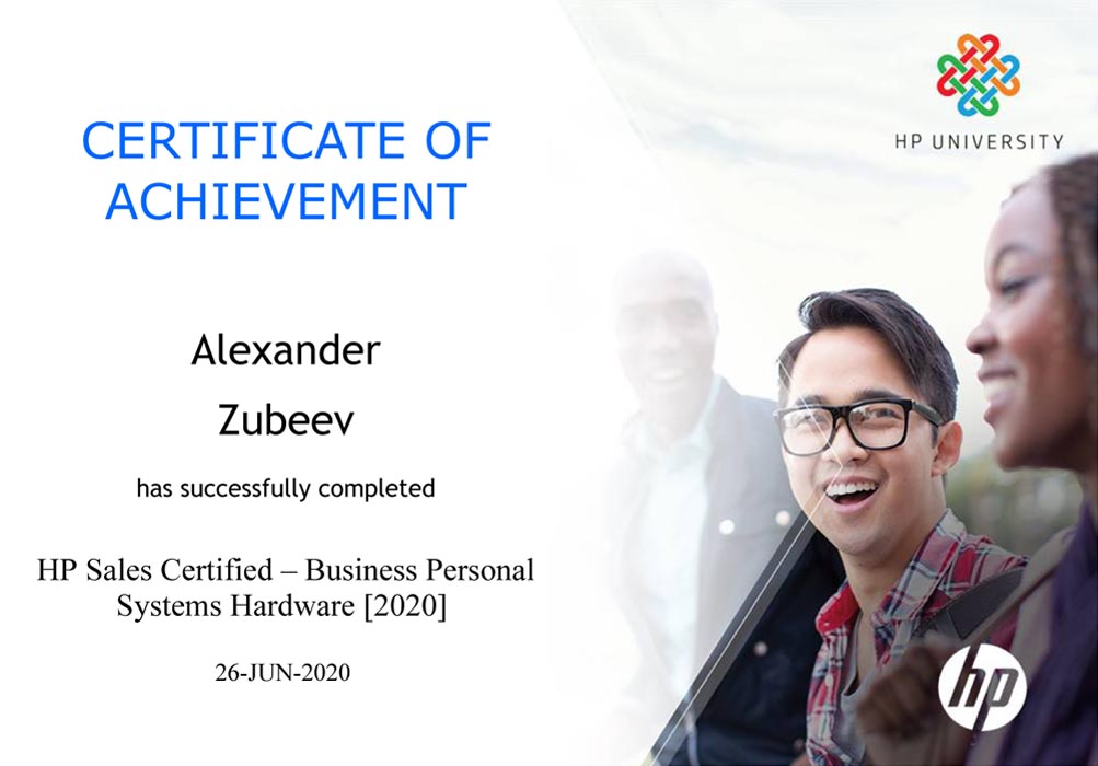 - Hewlett Packard Enterprise: Сертифицированный технический специалист (HPE ATP).