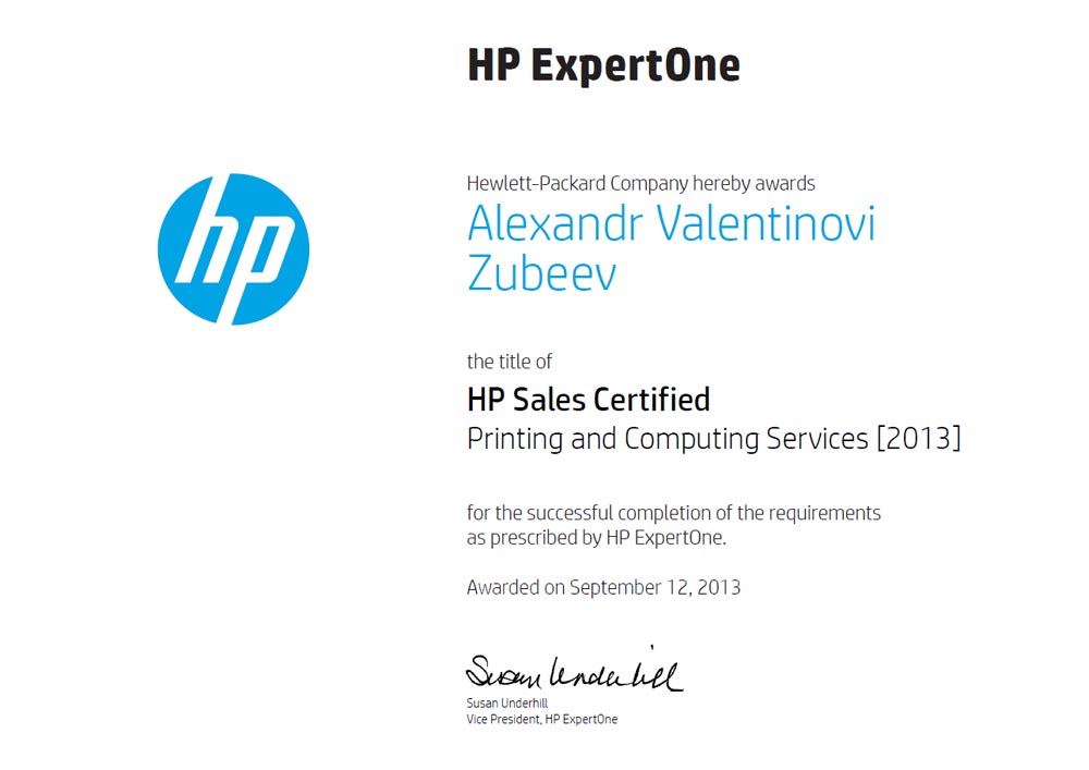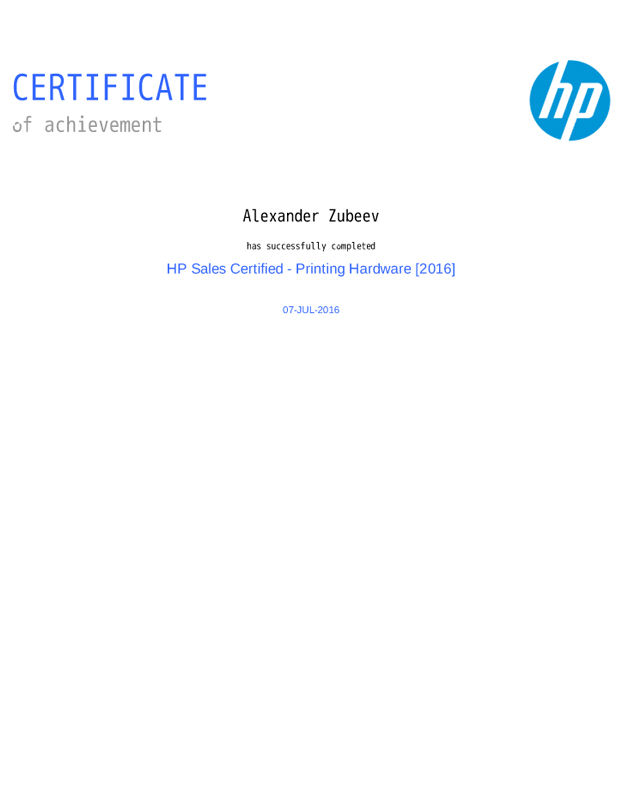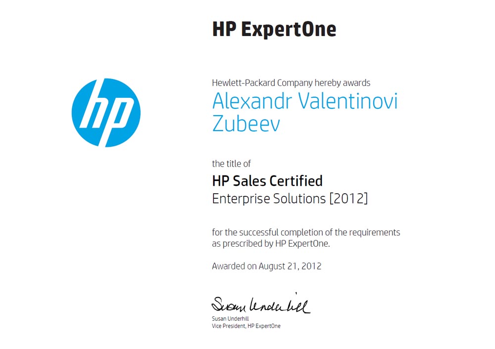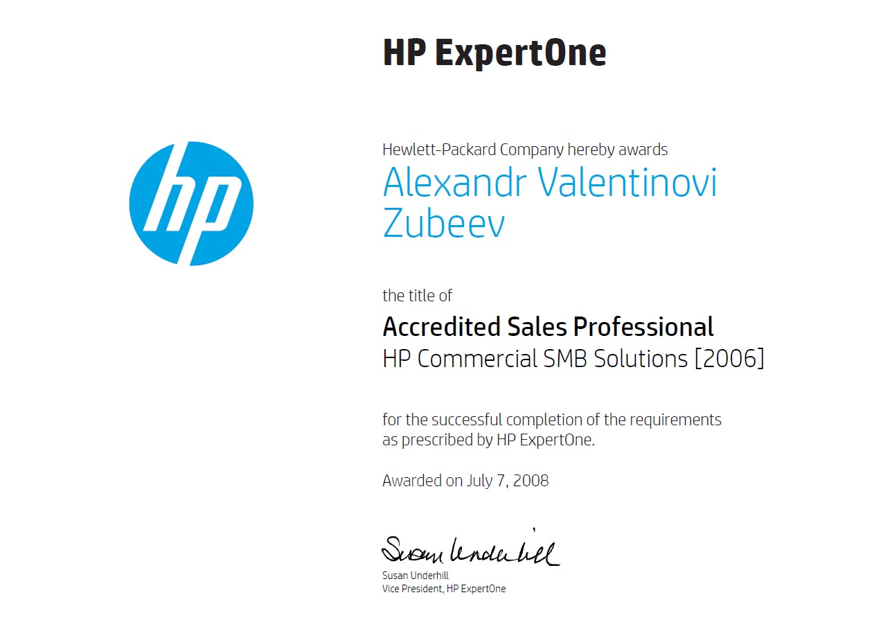 - Hewlett Packard Enterprise: Сертифицированный технический специалист (HPE ATP).