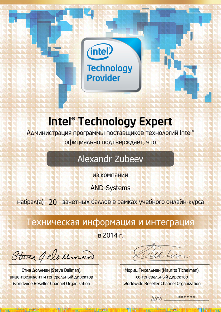- Intel: Сертифицированный партнер (в рамках статуса Intel Titanium).